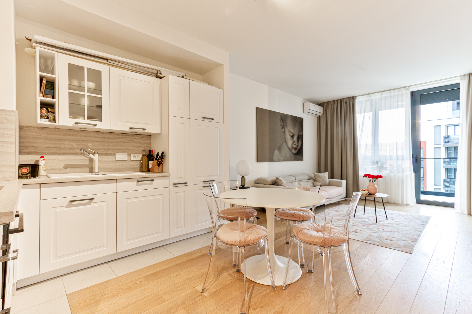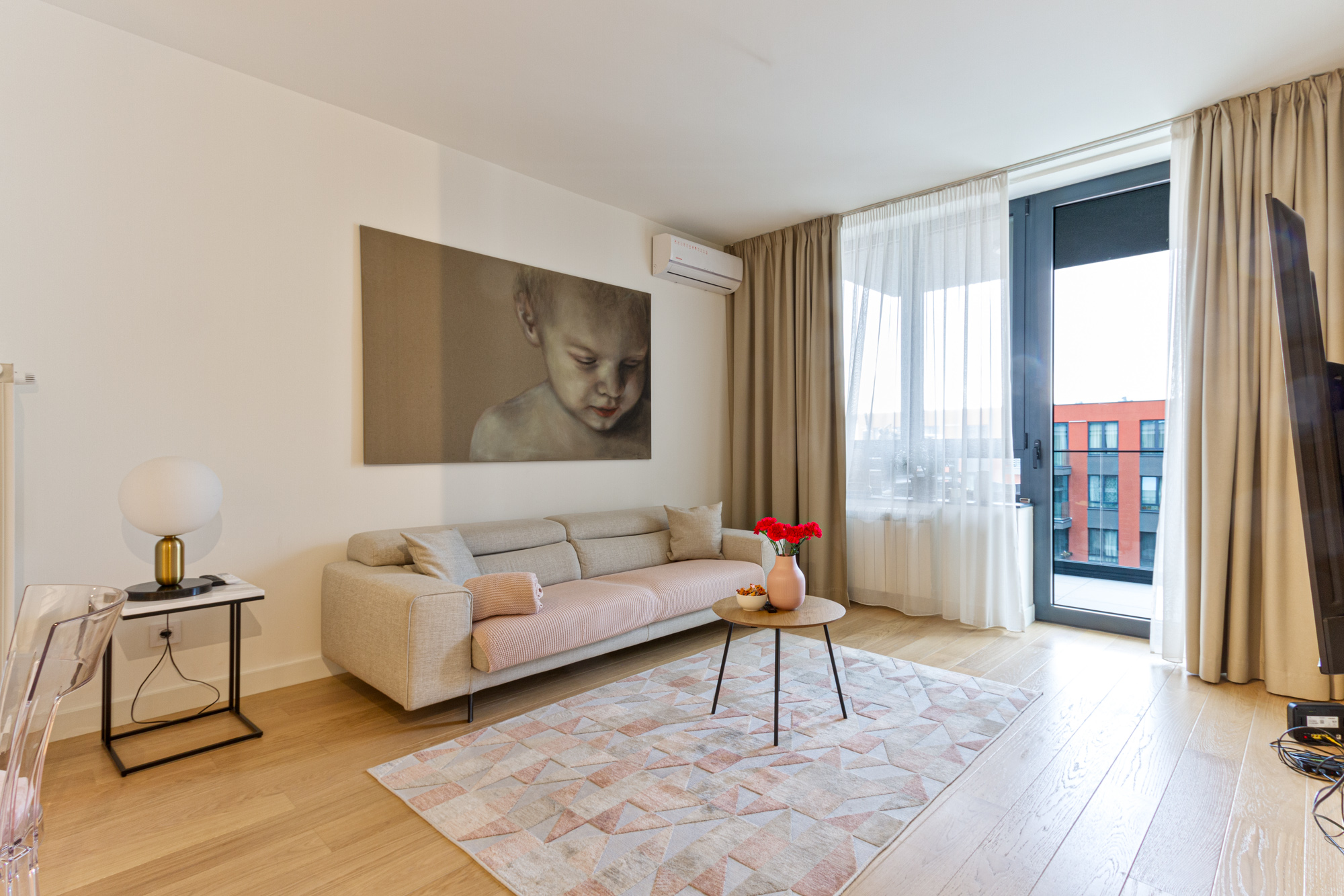 Stan je smešten nasuprot Savskog parka, u okviru Elements kompleksa, u prestižnom naselju Belgrade Waterfront.