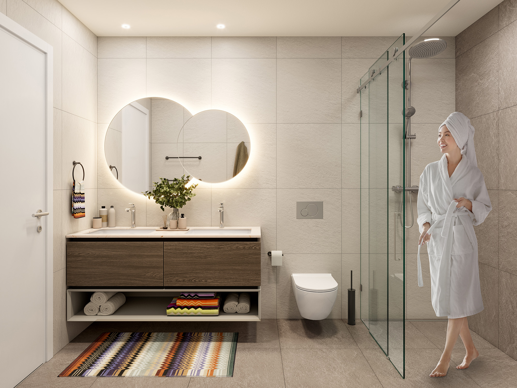 Ulaz u zgradu čini moderan lobi sa recepcijom i obezbeđenjem, uz poseban prostor za prijem pošte. Dodatne pogodnosti uključuju prostoriju za dečija kolica, pet station za higijenu ljubimaca nakon šetnje, kao i obezbeđen prostor za bicikle.