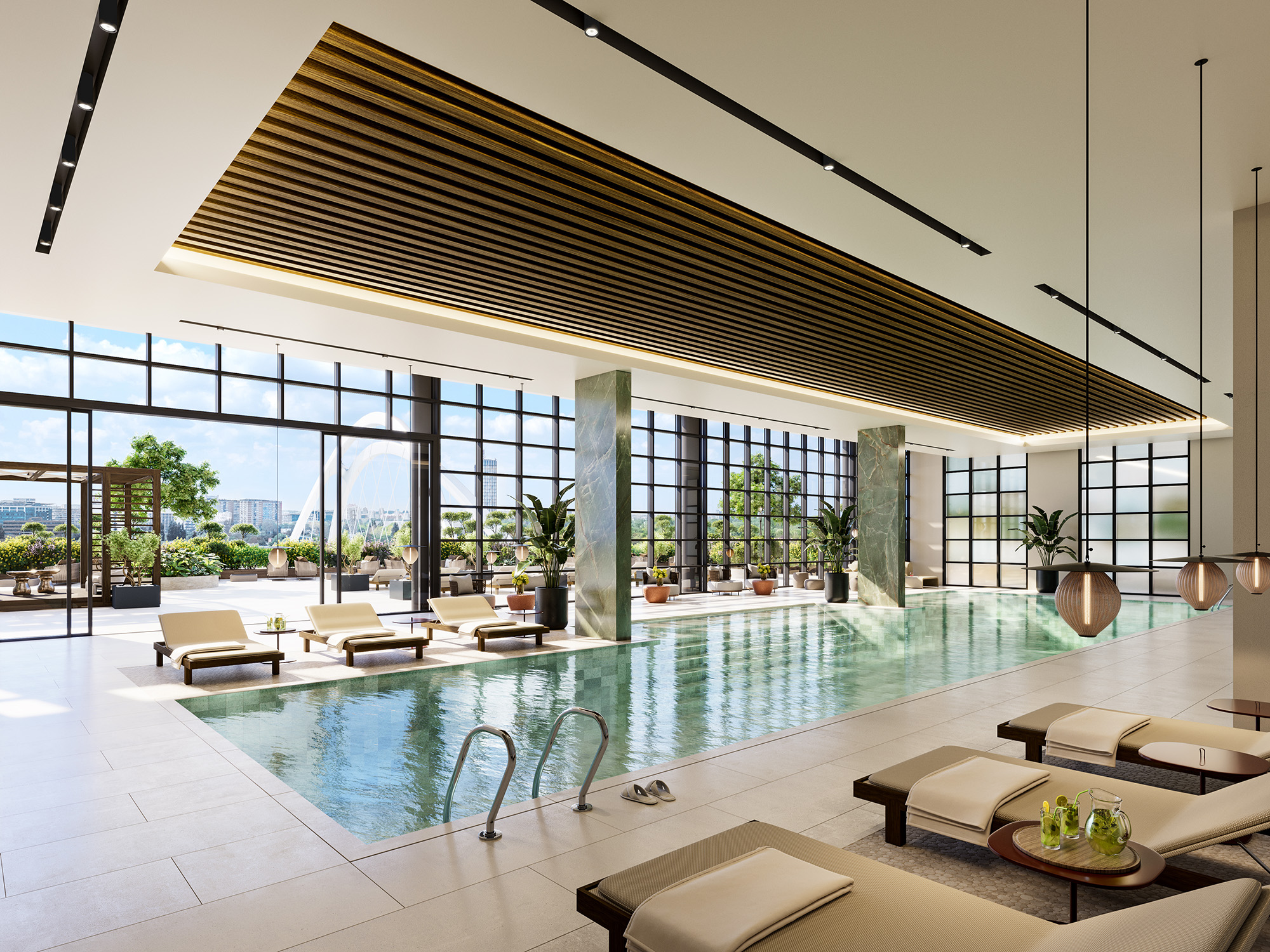 Na prvom spratu zgrade smeštena je spa zona dostupna stanarima – unutrašnji bazen, sauna, savremena teretana, svlačionica sa tuševima.