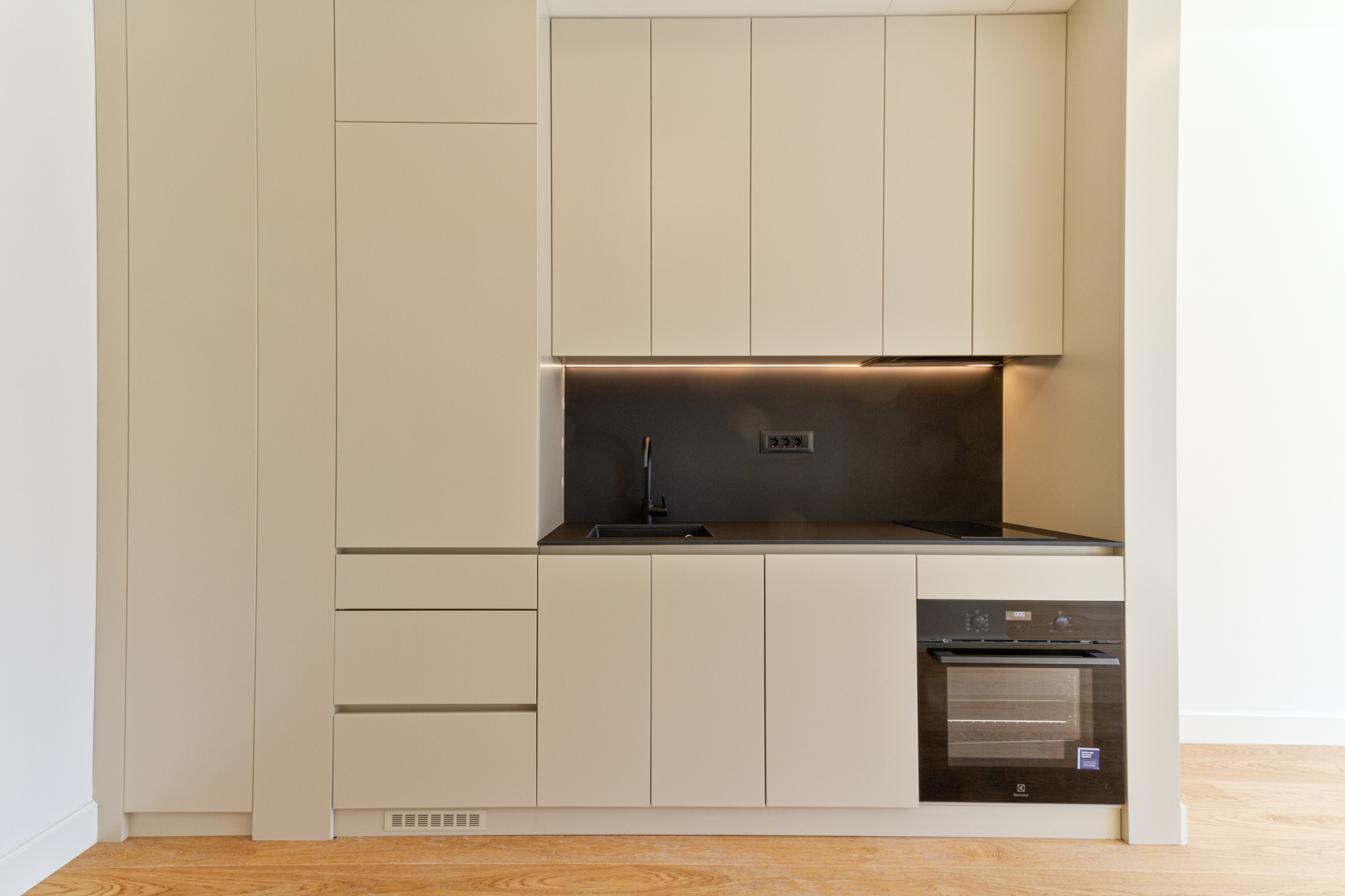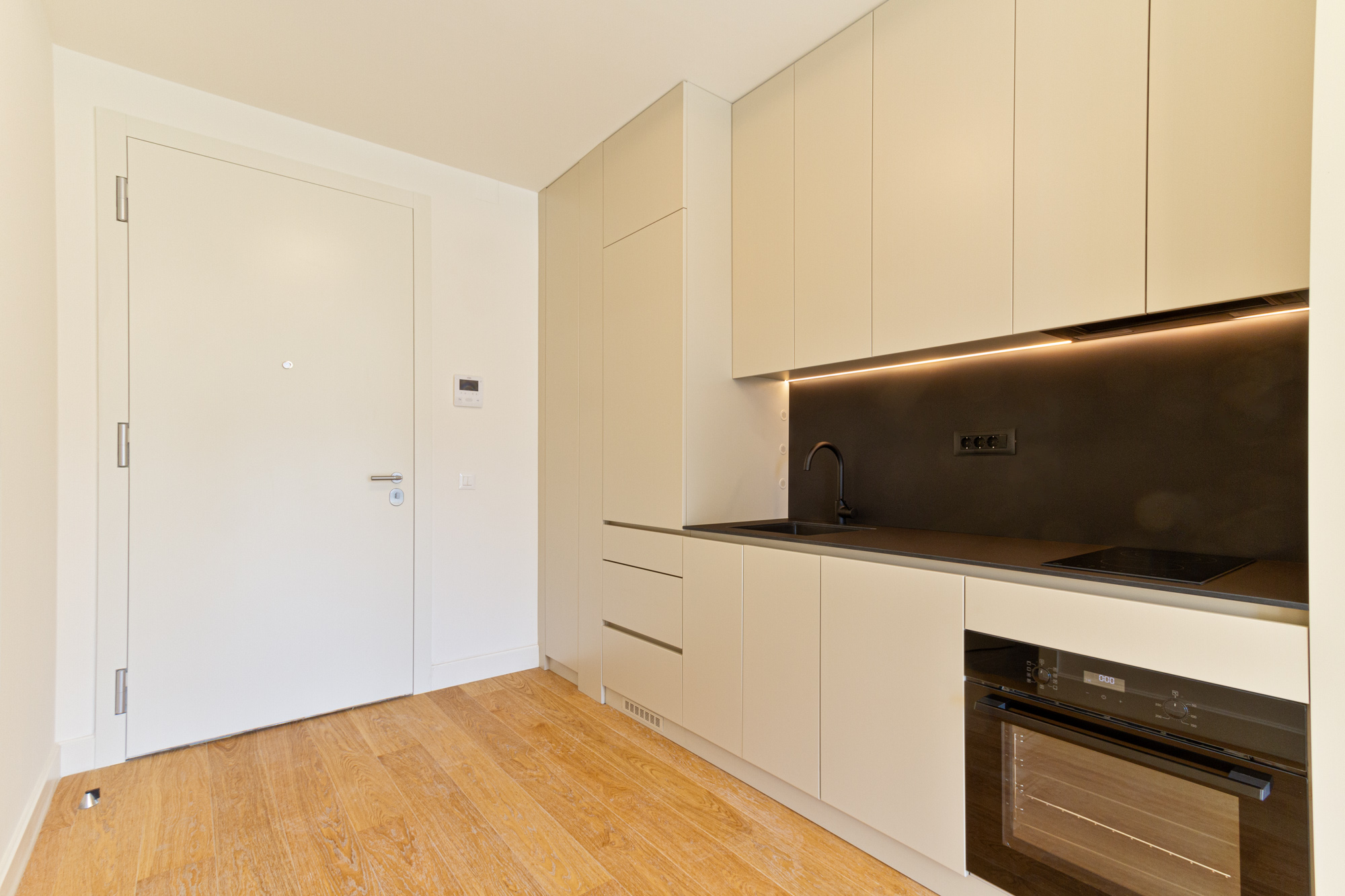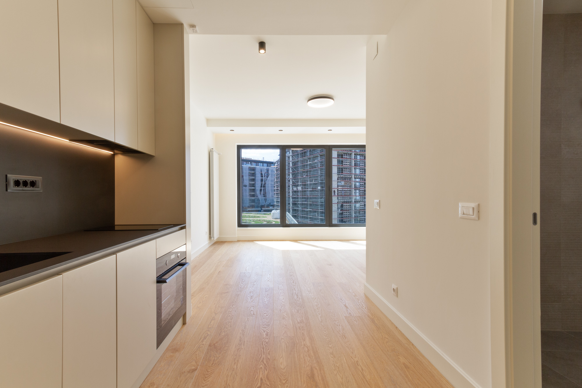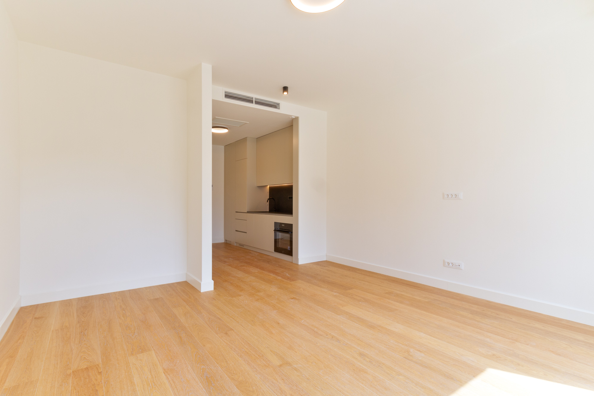 Stan poseduje ugrađenu kuhinju, dok ostatak prostora ostavlja mogućnost da ga urediš u skladu sa sopstvenim stilom i potrebama.